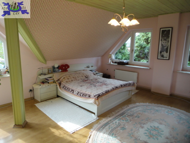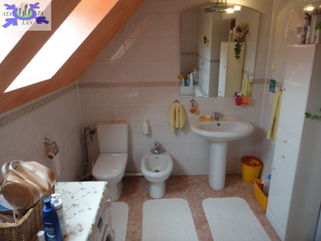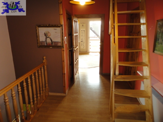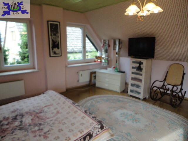 Piętro na którym znajdują się cztery pokoje- sypialnie 12,11,21,14 mkw, łazienka 7 mkw., pomieszczenie socjalne- schowek, hol z którego prowadza schody na poddasze. Na podłogach są panele. Ściany gładzone malowane. Piwnica w którym znajdują się cztery pomieszczenia i garaż dwu stanowiskowy. W 2009 r. był przeprowadzony w domu remont ale tak naprawdę nie był konieczny ponieważ dom był w bardzo dobrym stanie.