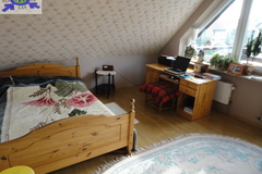 Piętro na którym znajdują się cztery pokoje- sypialnie 12,11,21,14 mkw, łazienka 7 mkw., pomieszczenie socjalne- schowek, hol z którego prowadza schody na poddasze. Na podłogach są panele. Ściany gładzone malowane. Piwnica w którym znajdują się cztery pomieszczenia i garaż dwu stanowiskowy. W 2009 r. był przeprowadzony w domu remont ale tak naprawdę nie był konieczny ponieważ dom był w bardzo dobrym stanie.