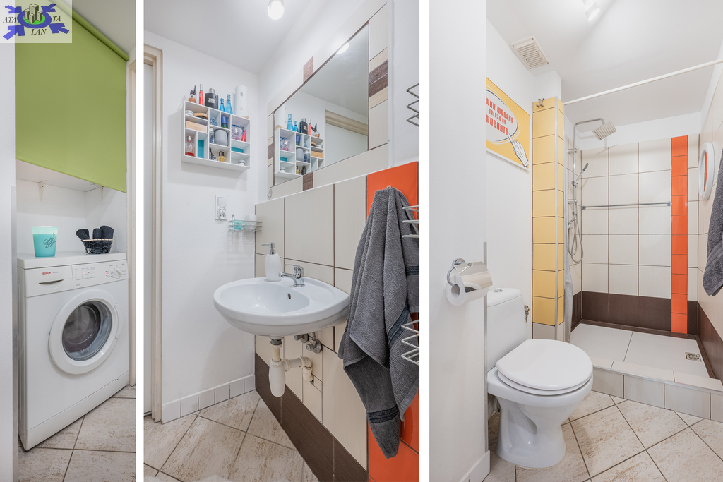 - łazienka w prysznicem oraz pralką.