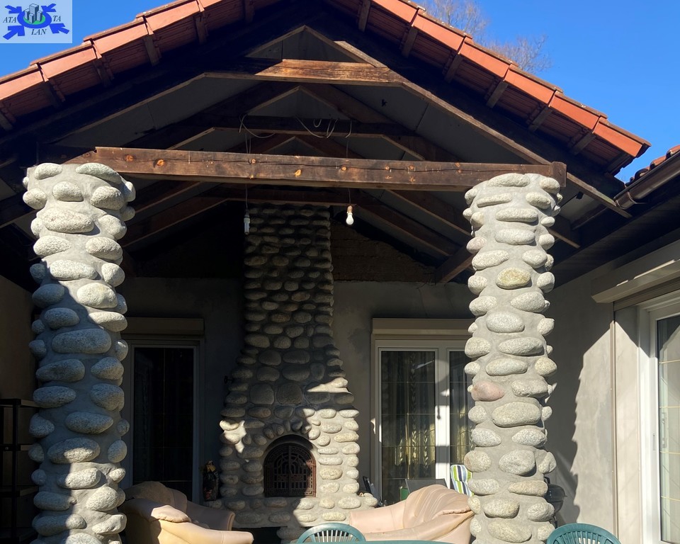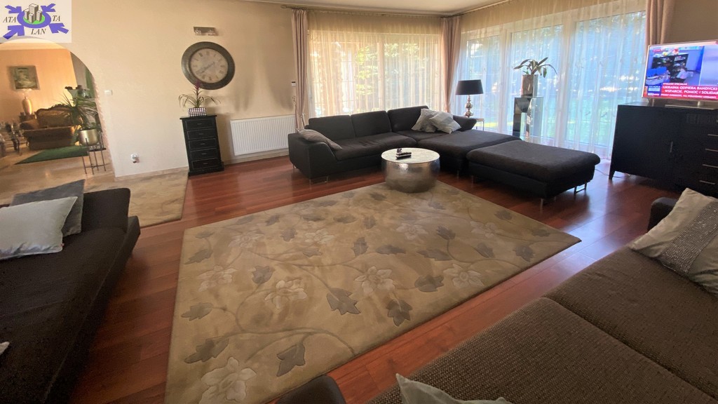 Przestronny salon z bezpośrednim wyjściem na taras i ogród połączony z otwartą, jasną, w pełni umeblowana kuchnią z wyspą kuchenną. Wielkoformatowe okna tarasowe. TARAS zadaszony z wymurowanym kominkiem.