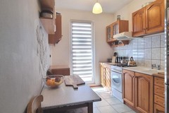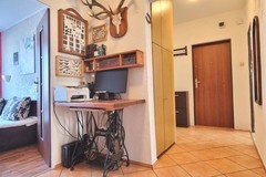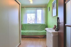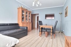 Podłogi w pokojach wyłożone są panelami, ściany gładkie malowane. Kuchnia wyposażona w meble z drewnianymi frontami i wykończona glazurą i terakotą. Łazienka w jasnych kaflach z wanną i miejscem na pralkę, wc osobno. Przestronny korytarz wykończony terakotą. Jedna z sypialni posiada obszerną zabudowę szafy, dodatkowo dwie szafy wolnostojące. Okna PCV, drzwi wejściowe antywłamaniowe. Wielkim atutem mieszkania jest duży balkon położony od zachodu oraz środkowe położenie lokalu. Coroczne zwroty za ogrzewanie w wysokości około 1500 złotych.