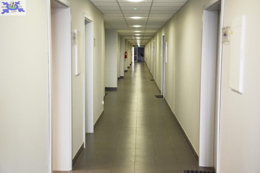 Oświetlenie na korytarzu na czujki ruchu. Toalety męskie i damskie oraz pomieszczenia socjalne na początku i na końcu korytarza - do dyspozycji wszystkich najemców.