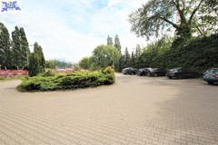 Przed budynkiem znajduje się zagospodarowany bardzo duży parking dla klientów, a cała nieruchomość jest ogrodzona.