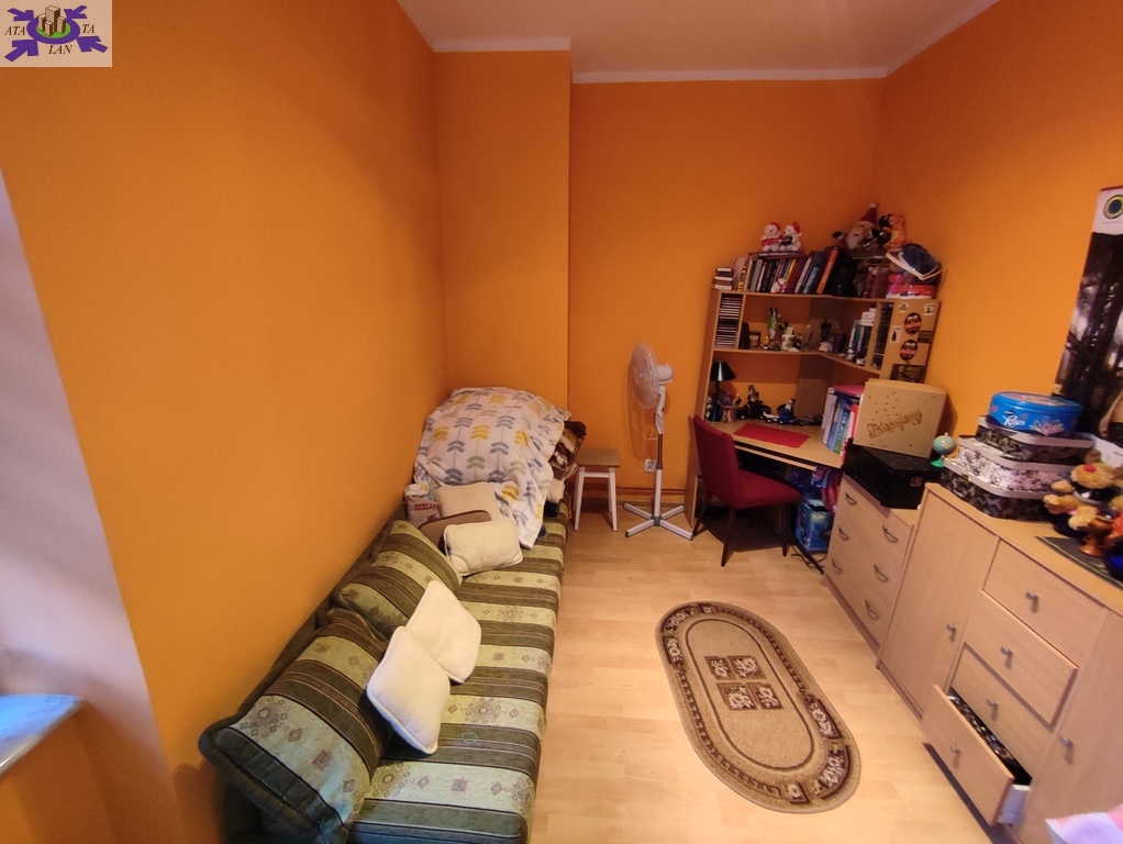 Mieszkanie obecnie składa się z salonu (prawie 19m2), trzech osobnych pokoi (10m2, 8m2, 7m2), osobno kuchni 10m2 z oknem, łazienki z toaletą (również z oknem) oraz dwóch przedpokoi. UWAGA - układ mieszkania częściowo przechodni (najpierw wchodzimy do holu, który ma po lewej stronie łazienkę a na wprost kuchnię i dopiero z kuchni wchodzimy do salonu, z którego znowu przechodzimy do pozostałych pokoi) !!! W 2015 roku w mieszkaniu zostały wymienione wszystkie instalacje (elektryczna, wodno-kanalizacyjna oraz grzewcza - na miedzianą). W pokojach panele na podłodze, ściany gładzone i malowane plus fototapeta na jednej ze ścian w salonie oraz kilka ozdobnych pasków tapety. W kuchni ciemniejsze panele na podłodze plus ozdobne kafelki na ścianie między meblami oraz sprzęt AGD (m.in. lodówka, kuchenka, okap i pralka). W łazience nowsza glazura i terakota plus wanna, umywalka z szafką, toaleta i grzejnik. W pierwszym przedpokoju starsza zabudowa (m.in. szafa) zaś w drugim przedpokoju nowsza, trzyczęściowa szafa typu Komandor. W cenie może pozostać większość umeblowania mieszkania widocznego na zdjęciach.
