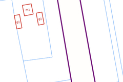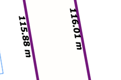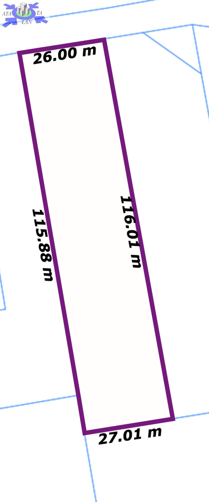 Nieruchomość w kształcie równego prostokąta, położona przy głównej ulicy.