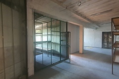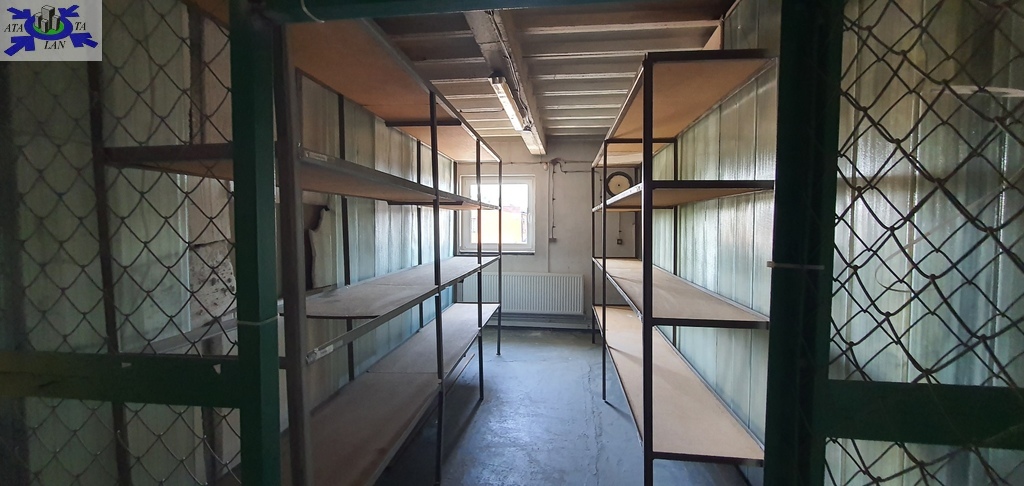 Na parterze znajdują się hala (135 m2), biuro wraz z recepcją (11 m2),kotłownia (16 m2), przedsionek (4 m2), korytarz ( 5,5 m2), WC (3 m2),klatka schodowa (3,5 m2), pomieszczenie z przyłączami elektrycznymi (3 m2). Wysokość hali 3,3 m, do wnętrza prowadzi brama segmentowa KRISPOL o wymiarach 280X230 cm, z drzwiami, podnoszona do sufitu (brak progu umożliwia wjazd do hali wózka widłowego lub samochodu.