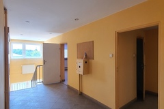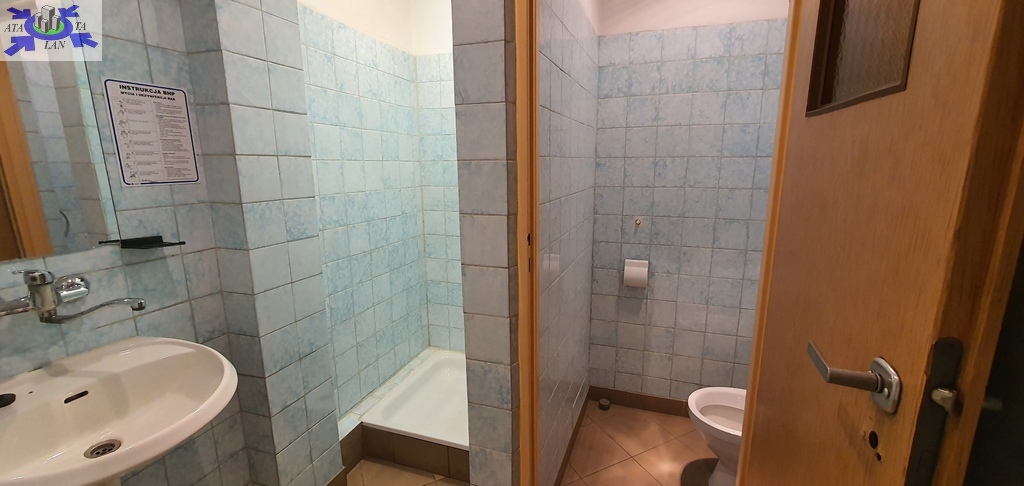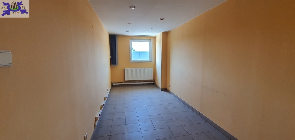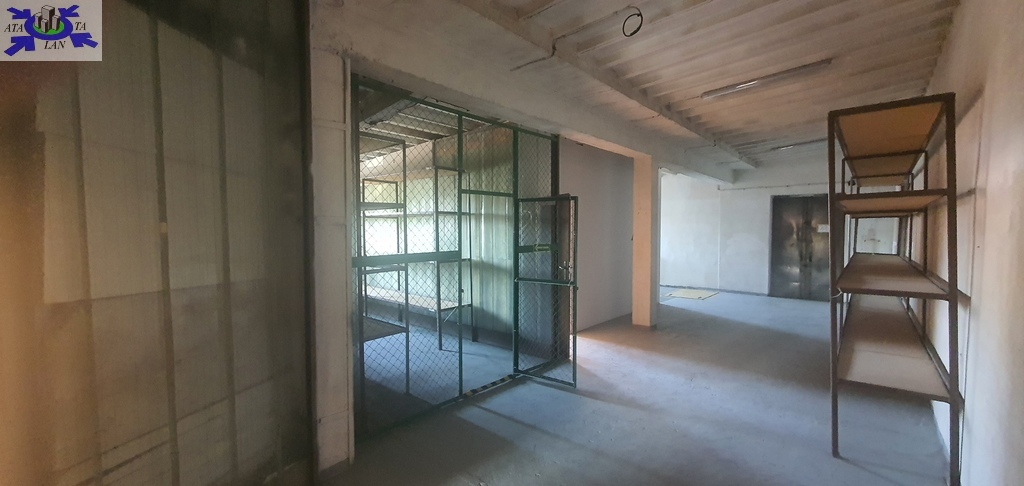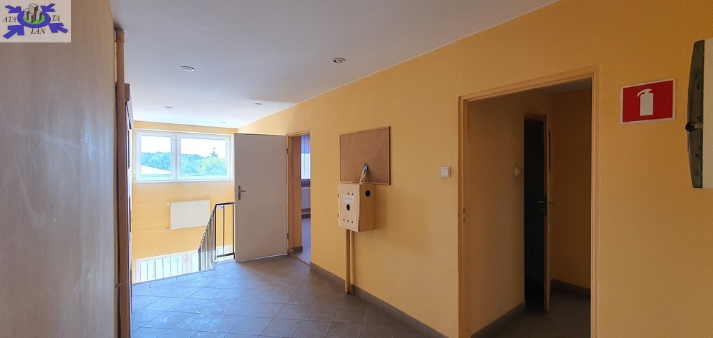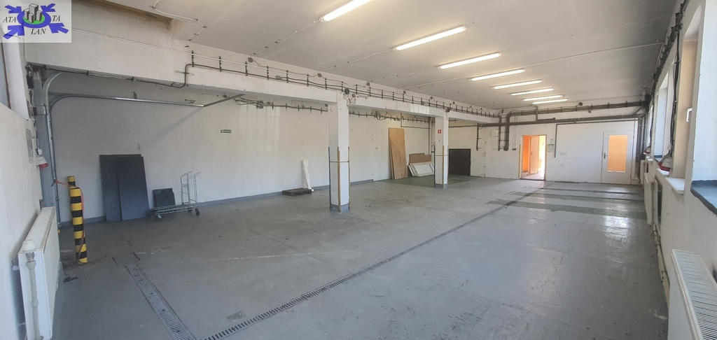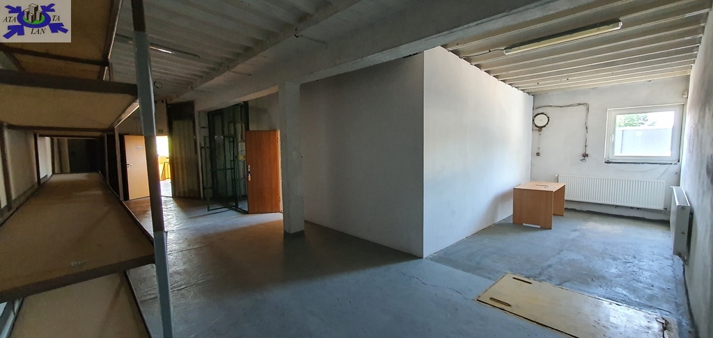 Na piętrze hala (90 m2), 3 pomieszczenia biurowe (22/19/15 m2), serwerownia (6 m2), pokój socjalny (8,5 m2), 2 łazienki z WC (po 4,5 m2), korytarz (10 m2). Wysokość hali na piętrze od 2,7 do 3,3 m. Podłoga w hali betonowa, niepyląca, z kratką ściekową wzdłuż całej hali, oświetlenie jarzeniowe z możliwością włączania sektorowego ( duża ilość punktów świetlnych).