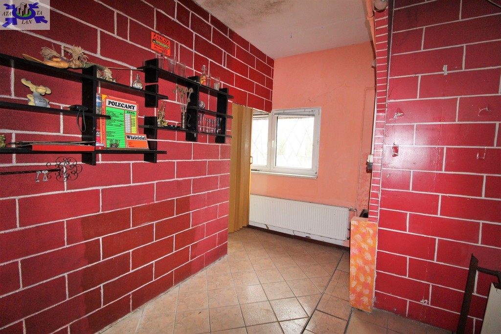Nieruchomość składa się z 4 pomieszczeń, kuchni, 2 łazienek, kotłowni.Lokal z czerwonej cegły do remontu. Na dachu eternit. Wszystkie instalacje w miedzi. Grzejniki aluminiowe. Ogrzewanie piec typu ,, śmietnik" na węgiel i drzewo. Dodatkowo ciepła woda z bojlera elektrycznego. W nieruchomości był prowadzony sklep oraz bar z dyskoteką, także spełnia wszystkie wymogi budowlane oraz sanepidu. Posiada książkę kontroli budynków. Tył obiektu ogrodzony z pomieszczeniami gospodarczymi.