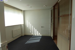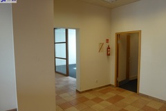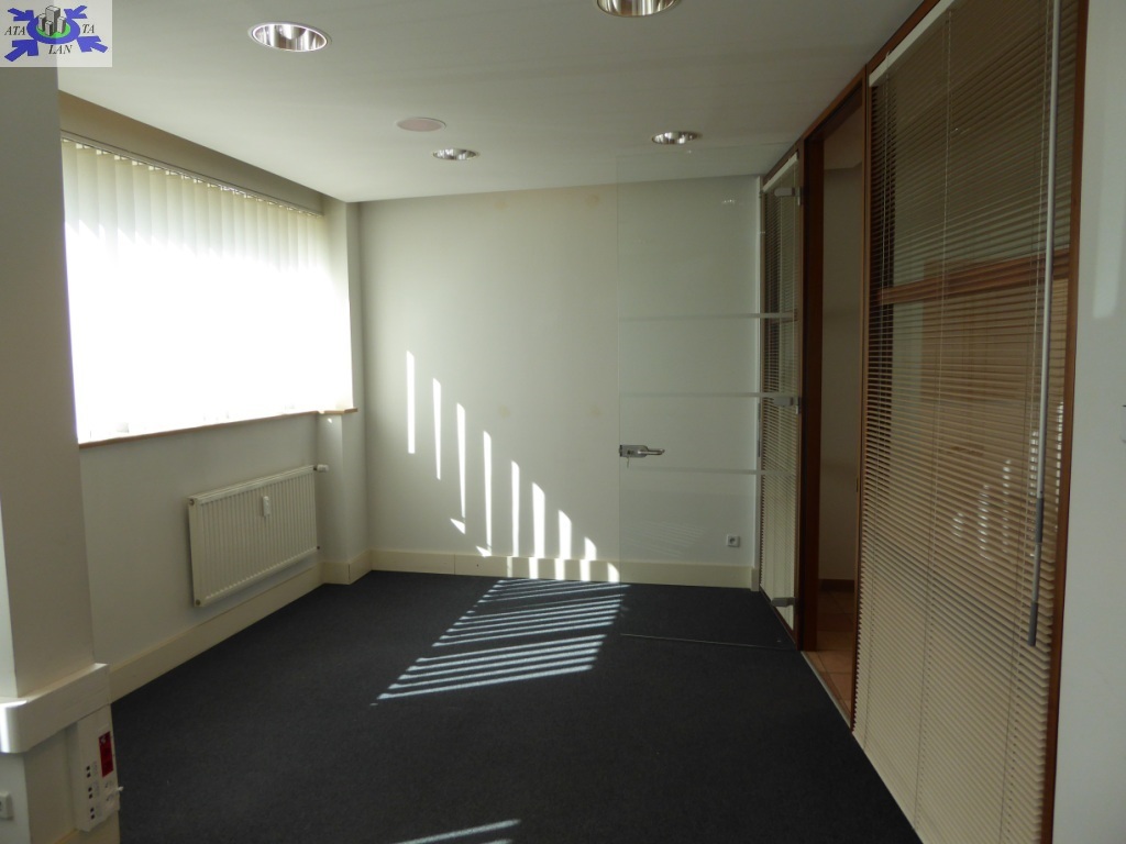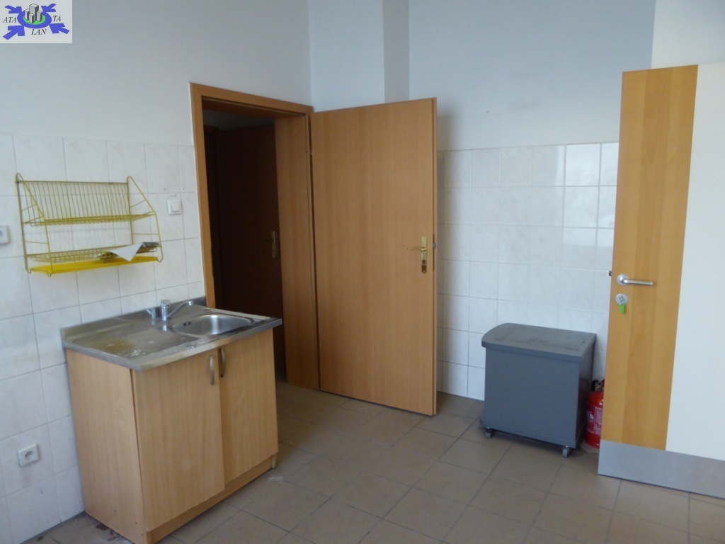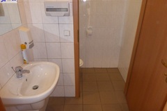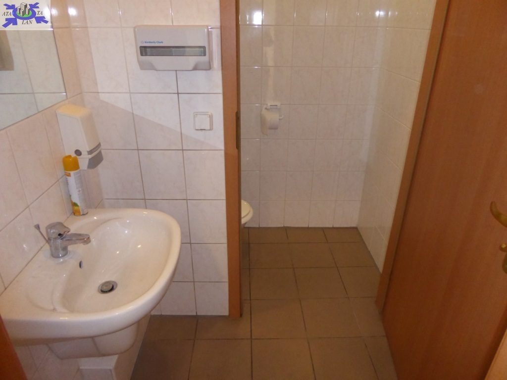 Na podłodze wykładzina, w części kafle, ściany gładzone i malowane. Toaleta w glazurze i terakocie. Sufit podwieszany z zamontowanym oświetleniem rastrowym. Pomieszczenie biurowe z dużymi oknami od strony zaplecza.