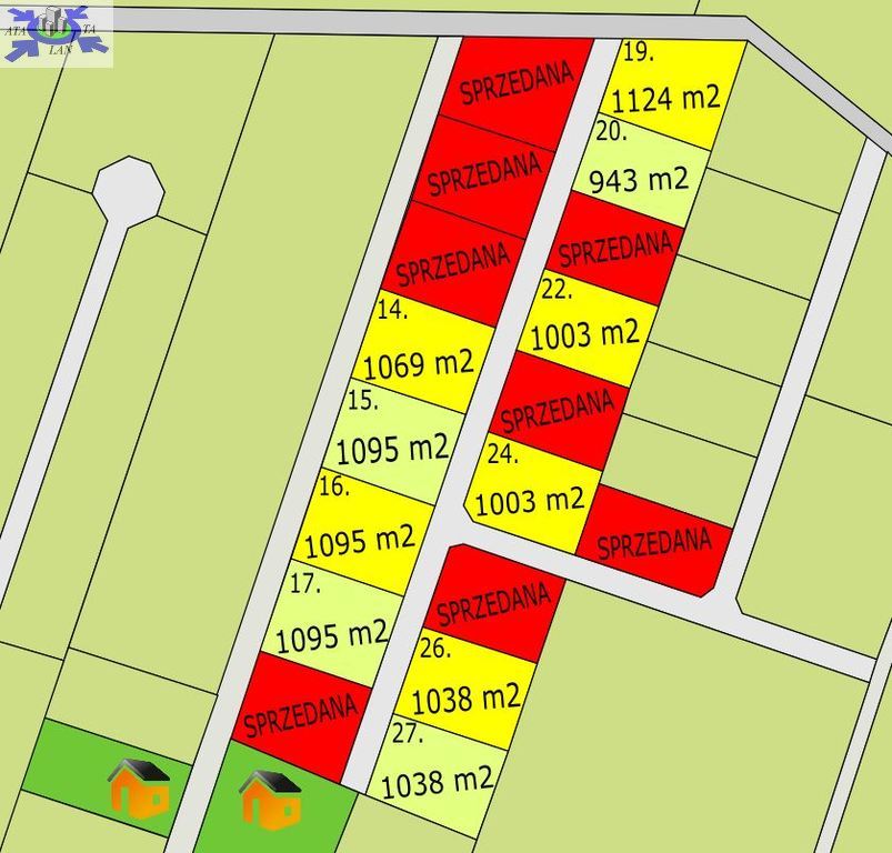 W sprzedaży również inne działki o pow. od 1000 m2 do 1300 m2.