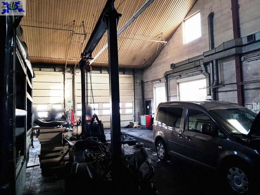 Hala warsztatowa składa się z hali głównej (260 m2) przystosowanej do jednoczesnej obsługi 4 samochodów ciężarowych, pomieszczenia ślusarni (50 m2), pomieszczenie biurowe (12 m2), magazynu (60), pomieszczenia socjalnego oraz węzła sanitarnego. (25 m2) z prysznicami. Hala posiada kanał oraz stanowiska myjki z odprowadzeniem wody. Do hali prowadzą dwie bramy wjazdowe (4 m x 4.3 m), wysokość hali 7 m - 7.5m. Pomieszczenie ślusarni ma osobną bramę - 4 m x 2 m. Warsztat jest ogrzewany za pomocą pieca gazowego.