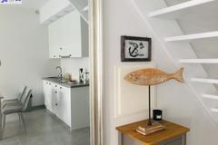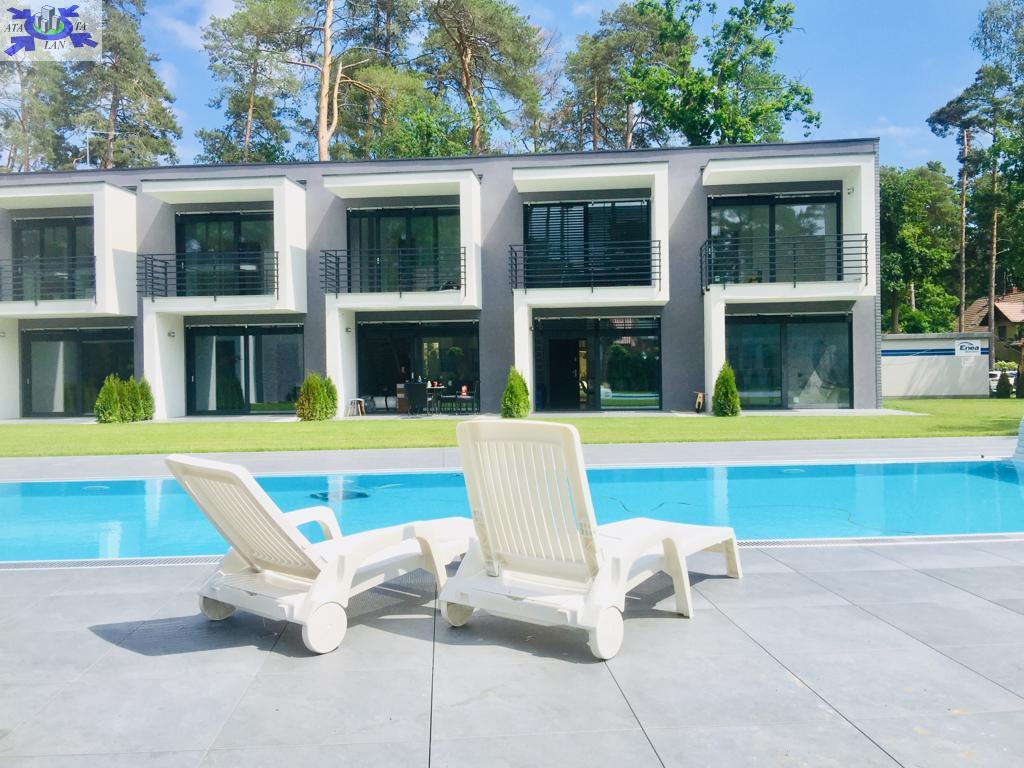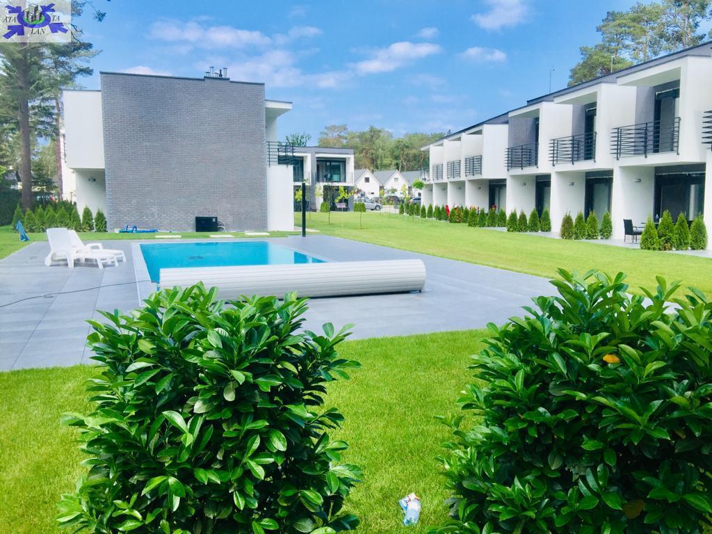 Na parterze pomieszczenia dzienne salon z aneksem kuchennym, łazienkę, przedpokój oraz drewniane schody prowadzące na 2 poziom. Z salonu wyjście na taras. Doskonałe doświetlenie wnętrza zapewniają duże, bezprogowe okna podłogowe, a dla zapewnienia odpowiedniej prywatności automatycznie sterowane żaluzje oraz system alarmowy. Ogrzewanie podłogowe gazowe na całej powierzchni apartamentu. Drzwi zewnętrzne i wewnętrzne drewniane.