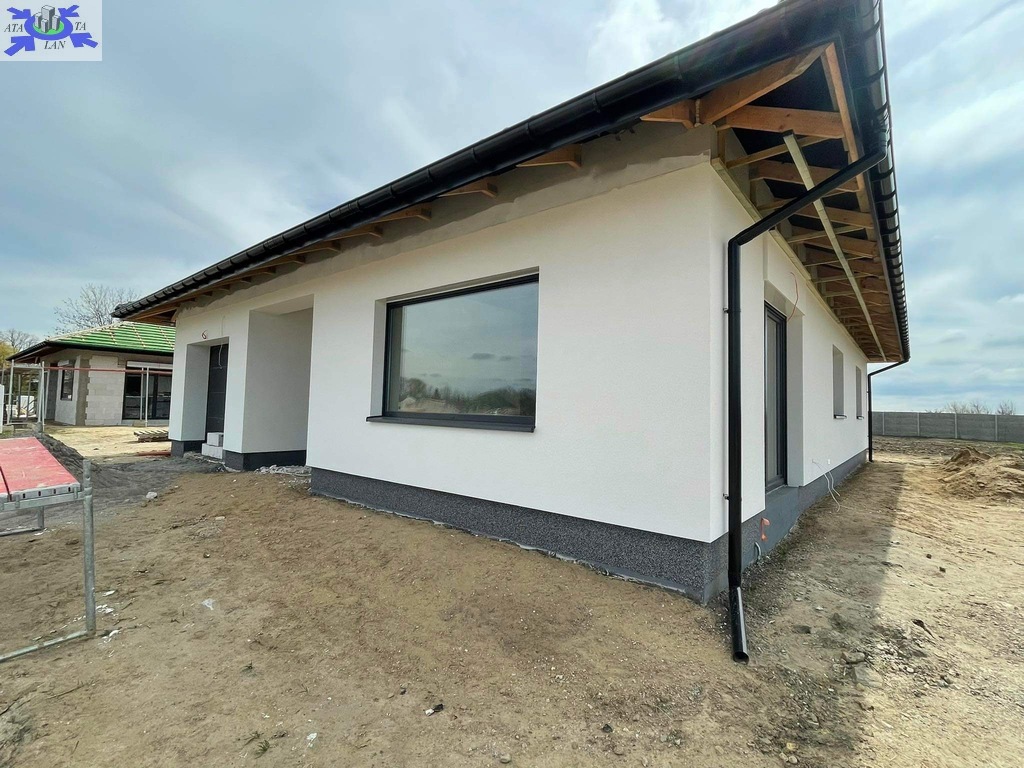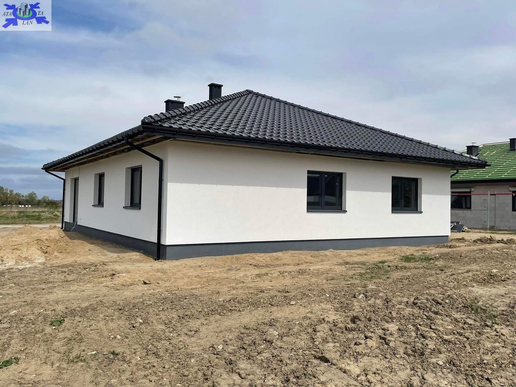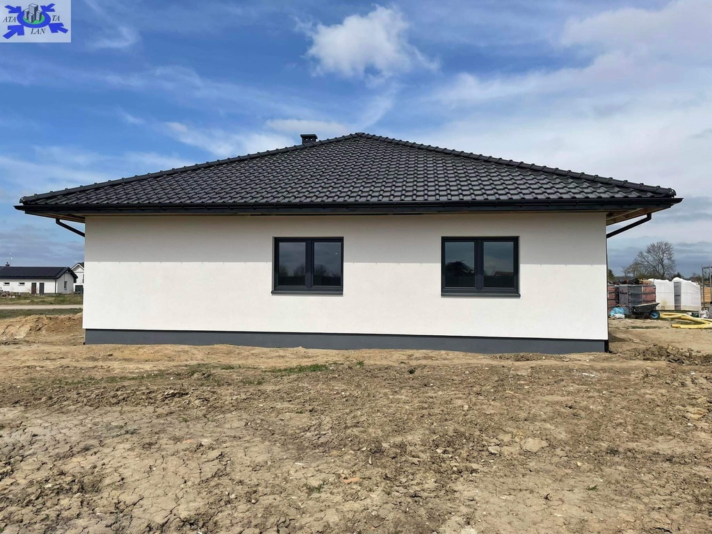 Na sprzedaż dom parterowy w stanie deweloperskim w Bobolinie blisko Szczecina, 15 min do centrum ! Powierzchnia całkowita domu wynosi 179,52 m2, powierzchnia użytkowa 117 + garaż 142 m2 na działce o powierzchnii 1152 m2. Na powierzchnię 179,52 m2 składa się salon 26,67 m2 z aneksem kuchennym 11, 74 m2, wydzielona spiżarnia 1,15 m2, 3 sypialnie 16,25 m2, 15,52 m2, 11,84 m2, 2 łazienki 6,88 m2, 3, 84 m2, kotłownia 5, 38 m2, hall 16,13 m2, wiatrołap 5, 81 m2, garaż jednostanowiskowy w bryle 18,92 m2. Kąt nachylenia dachu wynosi 25 stopni, wysokość budynku 6,69 m. Dom idealnie nadający się dla rodziny 2+2 z podziałem na strefę dzienną, salon z kominkiem, z wyjściem na taras oraz strefę nocną prowadzącą przez dość długi korytarz w jednej lini kompleks sypialni. Dodatkowo możliwość adaptacji strychu zyskując przy tym około 20 m2. Wielkim atutem domu jest położenie względem stron świata, przez co salon z wyjściem na taras będzie większości dnia nasłoneczniony, co sprzyja domownikom przy korzystaniu z ogrodu.