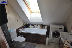 -łazienka z wanną, kabiną prysznicową, umywalką razem z wc (pralka)