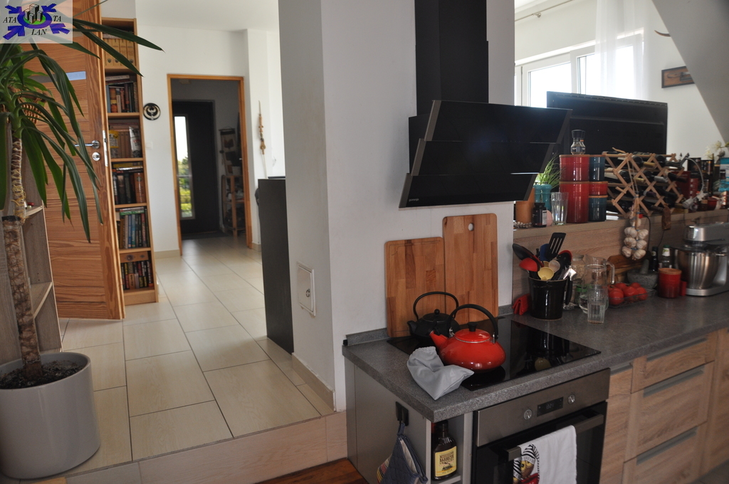 -kuchnia z jadalnią (15,6m2) z wyjściem na 20-to metrowy taras w pełni umeblowana i wyposażona (kuchenka, zmywarka, lodówka)