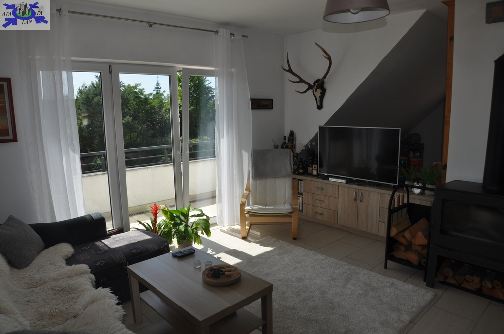 3-pokojowe mieszkanie z dużym tarasem i balkonem. Niezależne wejście zewnętrznymi schodami.