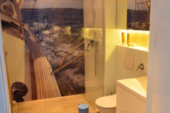 Apartament wykończony materiałami najwyższej klasy z pomocą projektantów z dbałością o wszystkie szczegóły i detale. Wszystko w jednolitej jasnej i ciepłej tonacji kolorystycznej z zachowaniem marynistycznego klimatu.