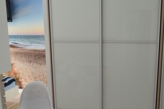 Sypialnia ok 15m2 od strony południowej. Na jednej ze ścian fototapeta, szafa Komandora, meble robione na wymiar. Łazienka razem z Wc ( ok 6 m2 ), kabina prysznicowa, biały montaż firmy Catalano, dodatki Joop, na podłodze Porcelanosa, ściany ze szkła hartowanego z nadrukami. Ogrzewanie podłogowe. W przedpokoju zabudowana szafa. W cenie nieruchomości pozostaje zabudowa stała. Alarm, kamera i ogrzewanie sterowane przez internet.