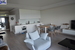Na jednej ze ścian jasne porcelanowe kafle firmy Porcenalosa. W salonie zastosowano oświetlenie sufitu firmy Barisoll, lampy Deltalight i ledy. Zainstalowano system nagłośnieniowy Sound Yamaha @ Jamo. Aneks kuchenny z jasnymi meblami robionymi na wymiar. Wyposażenie kuchenne Villeroy @ Bosch, a sprzęty kuchenne firmy Bosch i Elektrolux - zmywarka, płyta indukcyjna, okap, pralka, piekarnik.