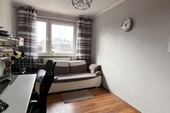 W całym domu okna PCV, na poddaszu 2 okna połaciowe, drzwi drewniane. Na podłodze w salonie i jednej sypialni deski drewniane w pozostałych pokojach panele, w łazienkach oraz kuchni płytki. Ściany gładzone i malowane.