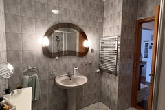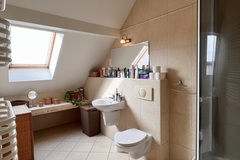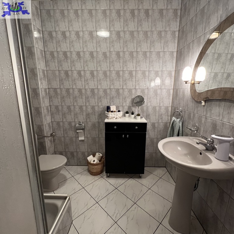 Kuchnia wyposażona w meble w zabudowie kuchennej, zmywarkę, lodówkę, płytę indukcyjną oraz okap. Wszystkie łazienki wyposażone w umywalkę, WC oraz grzejnik drabinkowy na parterze oraz poddaszu prysznic a na piętrze jest wanna.