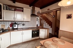 Parter stanowi niewielki przedpokój, oddzielna kuchnia, łazienka z WC, przestronny salon z kominkiem, oraz wyjściem na duży taras, z którego jest zejście do ogródka.