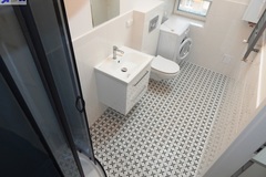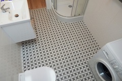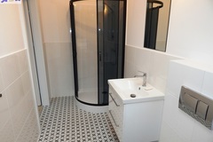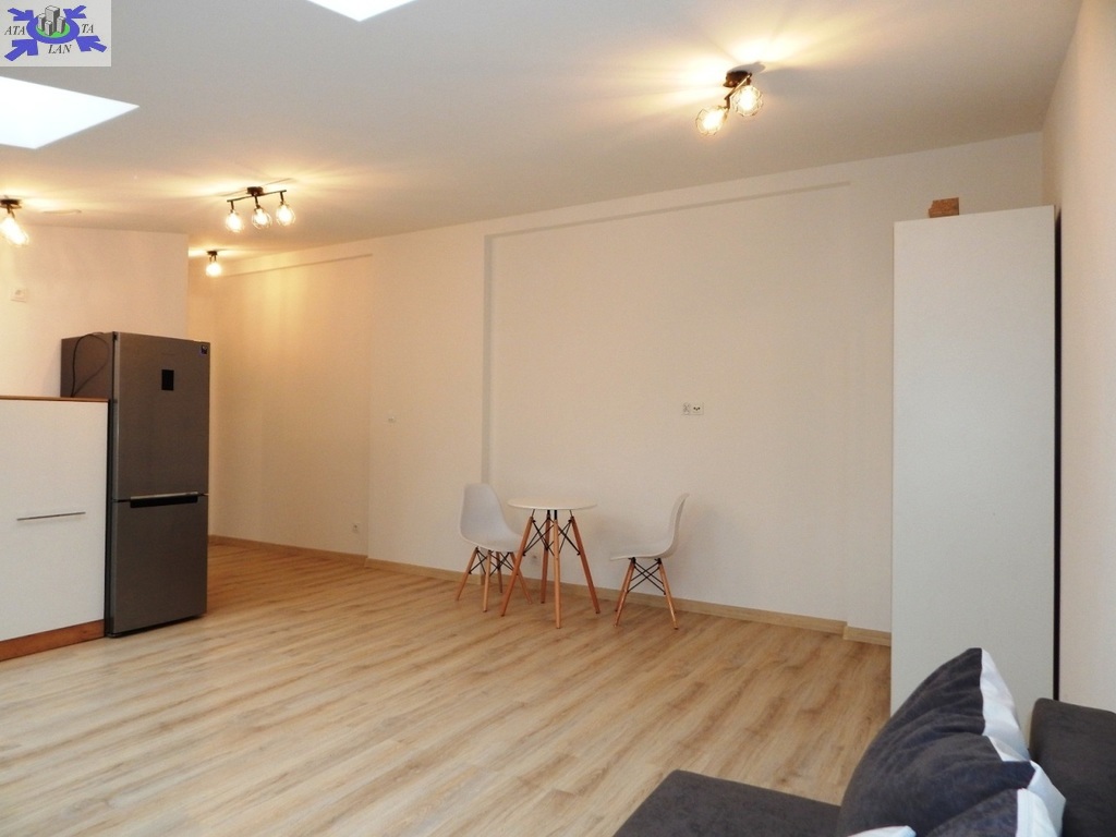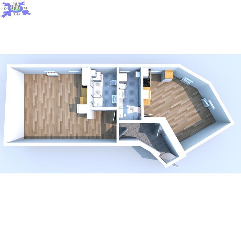 Powierzchnia ok. 26 m2 to salon z aneksem kuchennym (ok. 21 m2) z kanapą z funkcją spania, stolikiem jadalnianym z dwoma krzesłami, dużą szafą. W aneksie meble i lodówka w zabudowie, płyta grzewcza elektryczna łazienka w gustownej, nowoczesnej glazurze i terakocie (5 m2) z kabiną prysznicową, WC pralka na wyposażeniu.