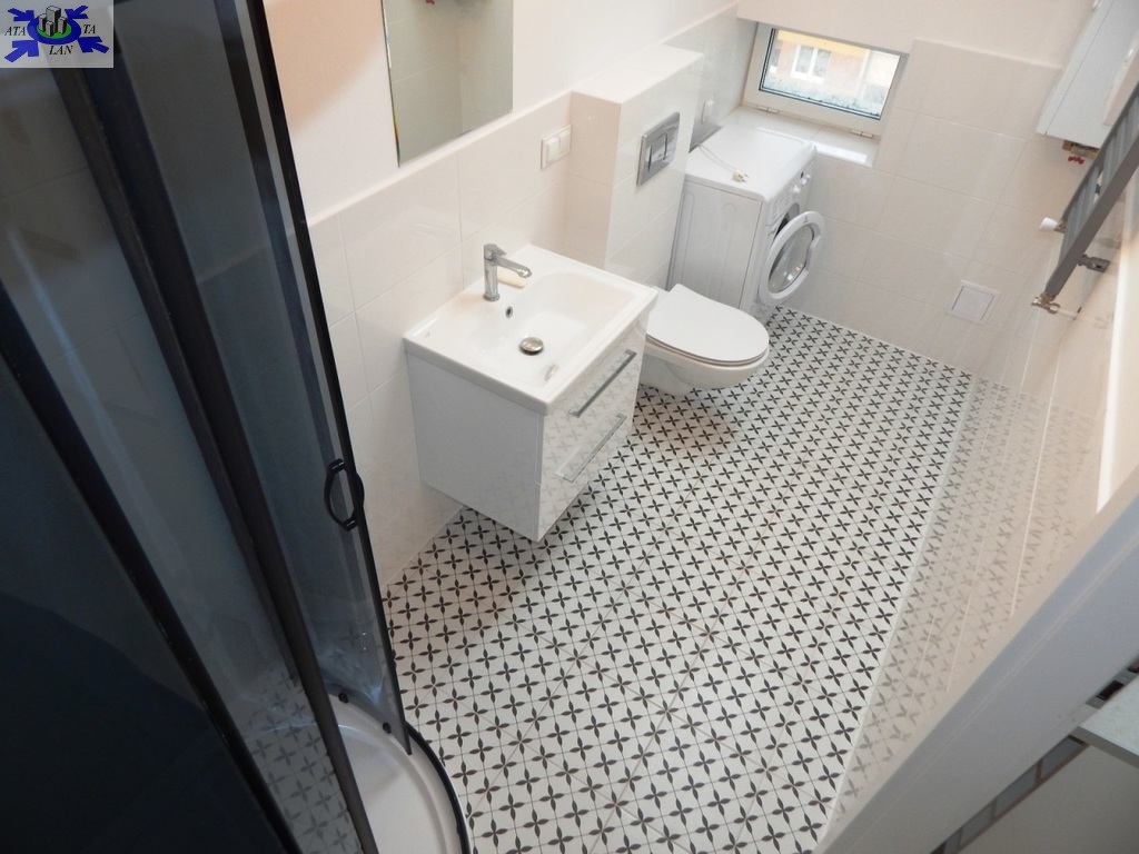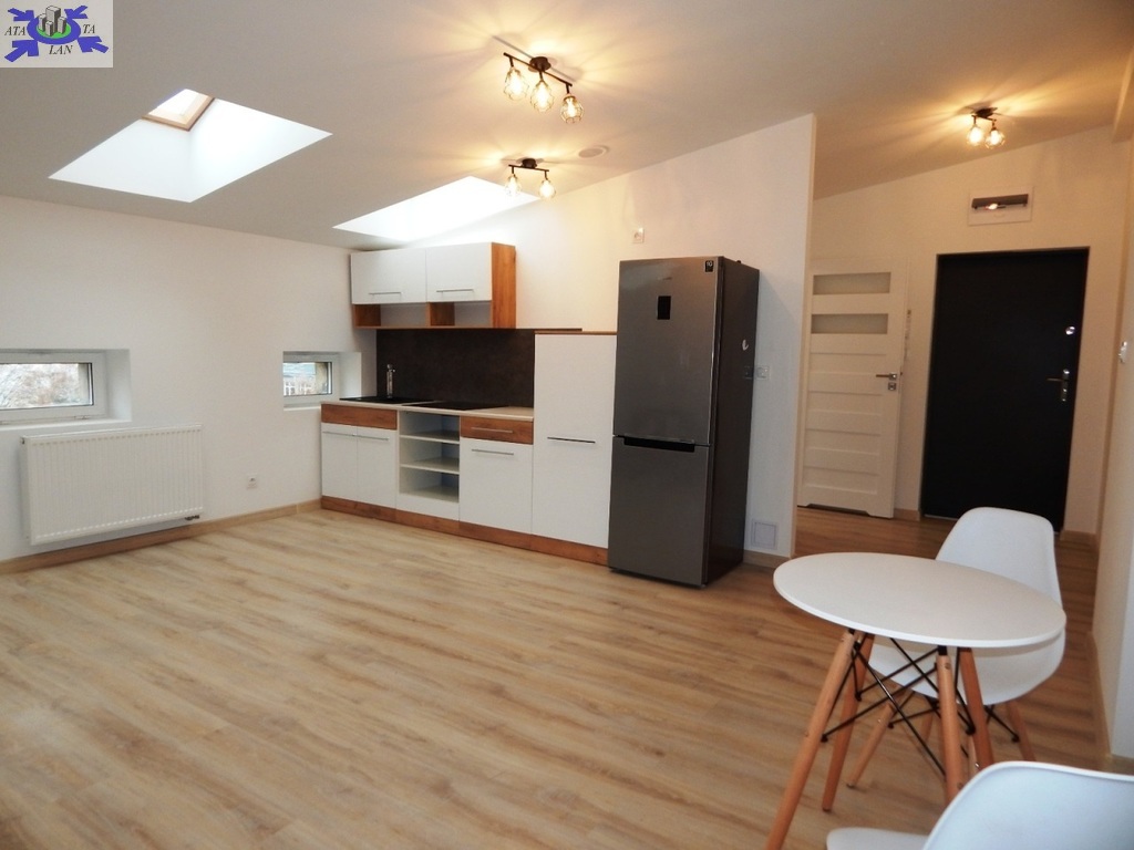 Doświetlenie oknami połaciowymi (w łazience również) daje niesamowity klimat w mieszkaniu. Nieuciążliwe skosy - minimalna wysokość 205 cm.