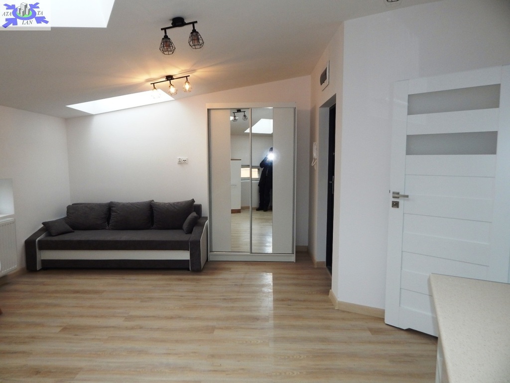 Na powierzchnię około 36 m2 składają się salon z aneksem kuchennym (ok. 26 m2) z kanapą z funkcją spania, stolikiem jadalnianym z dwoma krzesłami, dużą szafą. W aneksie meble w zabudowie, pełnowymiarowa, wolnostojąca lodówka SAMSUNG, płyta grzewcza elektryczna łazienka w gustownej, nowoczesnej glazurze i terakocie (5 m2) z kabiną prysznicową, WC pralka na wyposażeniu korytarz (ok. 4 m2).
