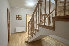 Na podłogach na parterze deska barlinecka i terakota, na podłogach na piętrze panele, ściany gładzone i malowane.