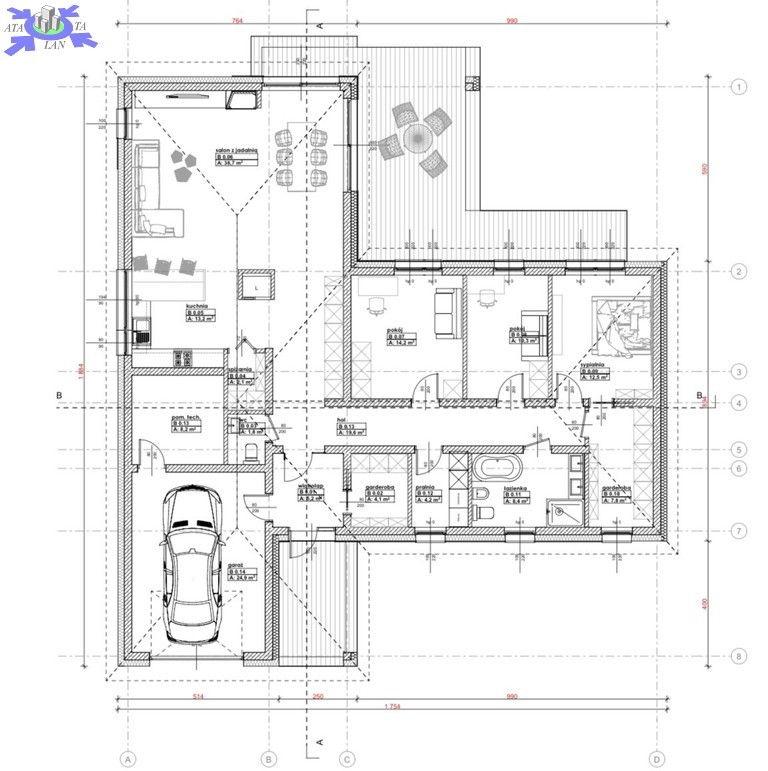 -kąt nachylenia połaci głównych dachu od 25 do 40 stopni.