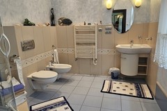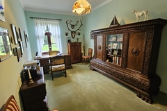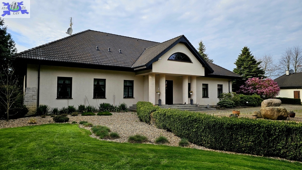 Do sprzedania nietuzinkowa rezydencja położona na dwu hektarowej działce otoczonej otuliną prywatnego lasu. Nieruchomość wybudowana w formie dworku z prywatnym basenem jeziorkiem oraz domkiem dla gości. Całość domu wybudowana w 2001 roku z bloczków firmy Fortis pokryta dachówką cementową. Okna PCV z szybami antywłamaniowymi w kolorze palisander. CO i CW własne gazowe + wspomaganie poprzez baterie solarne. Zamontowana instalacja fotowoltaiczna o mocy 9,5 kWh co w całości pokrywa zapotrzebowanie w energie elektryczną całego domu. Na 716 m powierzchni całkowitej składają się hol, WC, trzy sypialnie, kuchnia, jadalnia, spiżarnia, trzy łazienki razem z WC, pomieszczenia gospodarcze, pralnia, pokój relaksu z sauną, garaż trzy stanowiskowy z kanałem. 113- metrowy salon z wyjściem poprzez system panoramicznego okna przesuwnego typu HS na duży taras i zejście do basenu. Kominek w salonie + kominek z grillem za tarasie ogrodowym. Basen o wymiarach 12x5, woda z własnego ujęcia ze studni ogrzewana poprzez maty solarne oraz pompę ciepła. Całość poddasza użytkowego wielkości 288 m2 do dodatkowego zagospodarowania. Obok domu znajduje się 70 m2 całoroczny domek dla gości (salon +sypialnia + kuchnia +łazienka). Część ogrodowa wyposażona w system automatycznego podlewania z własnej studni głębinowej. Całość posesji zagospodarowana 30-sto letnim drzewostanem z wkomponowanym zarybionym stawem. Dwa lata temu została wymieniona na zupełnie nową oczyszczalnia biologiczna dla całej posesji. Rezydencja dla osób cenionych prywatność spokój i komfort. Zapraszamy na prezentację opisywanej rezydencji. Chcesz się poczuć luksusowo to zapraszam do osobistej weryfikacji i kontaktu z maklerem prowadzącym.