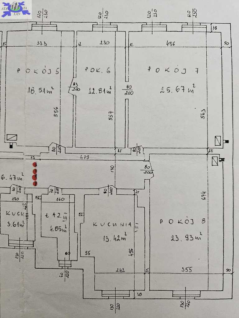 Mieszkanie przestronne, pokoje rozkładowe, jeden przejściowy. Składa się z czterech pokoi o powierzchni 25, 24, 13 i 13m2, kuchni 13,4m2, łazienki z wc 5m2 i przedpokoju 8m2. Istnieje możliwość uzyskania 5-6 pokoi i wynajmowania na pokoje.