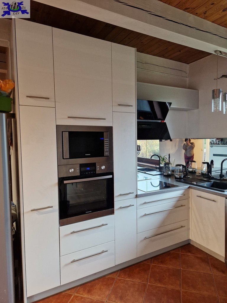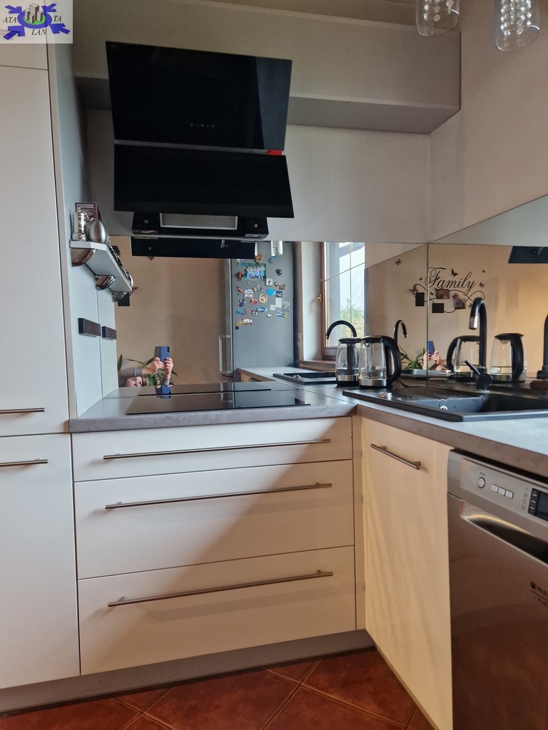 Spójna przestrzeń salon połączony z otwartą, funkcjonalną kuchnią z pełnym wyposażeniem doświetloną oknem. Kominek, z salonu bezpośrednie wyjście na taras i ogród.