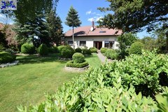 Działka o powierzchni całkowitej 1.372 m2( składa się z 2 przyległych działek o pow 702 m2 z zabudowanym domem, pięknym ogrodem, 670 m2 z posadowionym garażem wolnostojącym).