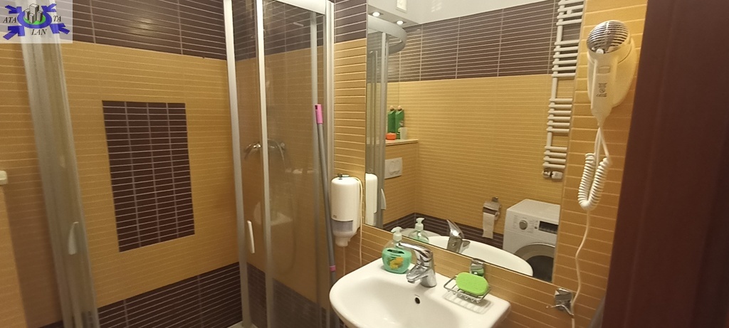 Łazienka razem z wc (kabina prysznicowa, umywalka, szafki pralka)