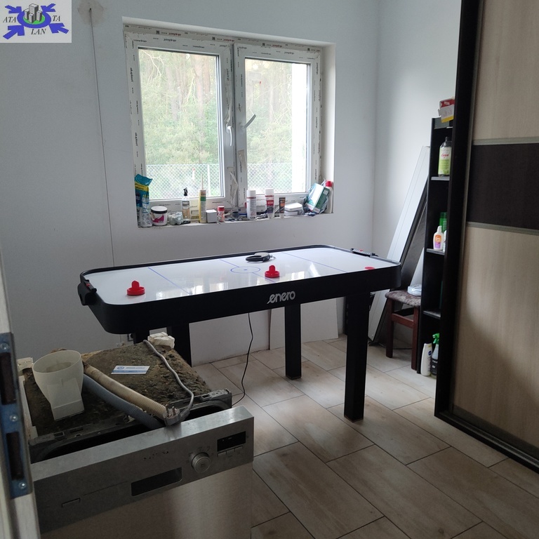 W pokojach na piętrze na podłogach panele, ściany gładzone i malowane. W korytarzu na piętrze gres. Łazienka i garderoba na górze do zrobienia.