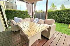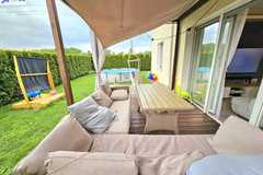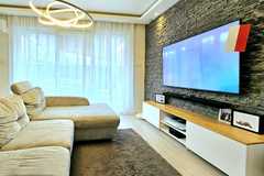 Oferujemy do sprzedania przestronny i słoneczny apartament z tarasem oraz dużym ogrodem (133 m2), znajdujący się na parterze niskiego budynku z 2016 roku, usytuowany na nowoczesnym osiedlu w atrakcyjnym zakątku Warzymic. Na powierzchnię 69,31 m2 składa się słoneczny salon z aneksem kuchennym, wyjściem na taras i ogród, dwie sypialnie, łazienka z WC oraz korytarz. Atutem nieruchomości - sporych rozmiarów ogródek (o powierzchni 133m2) z zaaranżowanym - dużym, drewnianym tarasem. Dodatkowo, na ogródku basen oraz piaskownica dla dzieci. Poczucie intymności zapewniają wysokie nasadzenia (ponad 2 m tuje) z zainstalowanym automatycznym systemem nawadniania (woda ogrodowa, sterowane aplikacją). Standard mieszkania - bardzo wysoki. Lokal wykończono i wyposażono materiałami oraz sprzętem klasy premium. W całym apartamencie zainstalowano wodne ogrzewanie podłogowe z elektronicznymi termostatami w każdym pomieszczeniu, sterowane zarówno ręcznie jak i przez aplikację. W oknach elektrycznie sterowane rolety zewnętrzne. Dodatkowym atutem, wysokowydajna klimatyzacja firmy mitsubishi heavy industries (chłodząco/grzewcza w klasie A++). Kuchnia wyposażona w bardzo wydajny wyciąg (1200m3 na godzinę). Apartament posiada także i garderobę. W cenie nieruchomości - całość umeblowania, w tym w zabudowie oraz sprzęty RTV/AGD widoczne na zdjęciach. Osiedle na którego terenie znajduje się nieruchomość, bardzo zadbana, ogrodzona, z ogólnodostępnym parkingiem, dużą ilością zieleni, alejkami spacerowymi, wydzielonymi i ogrodzonymi strefami zabaw dla dzieci. W pobliżu m.in. markety, sklepy, szkoła, przedszkole. W odległości około 5 kilometrów granica polsko - niemiecka (Kołbaskowo i Rosówek) oraz autostrada A6.