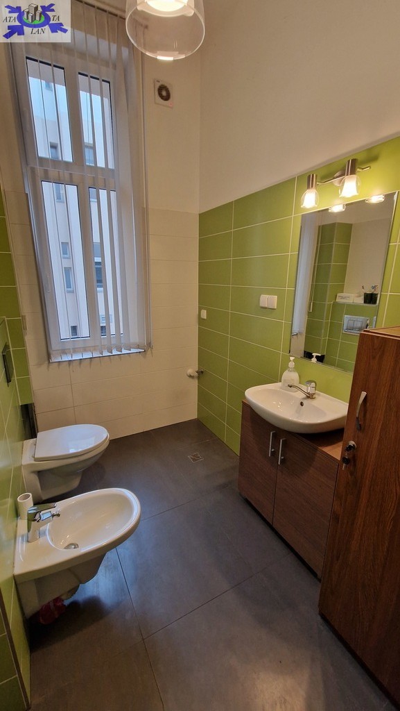 Nieruchomość ogrzewana z pieca gazowego dodatkowo posiada również zamontowaną klimatyzację. Jeden z pokoi biurowych posiada balkon z widokiem na Park Generała Andersa.