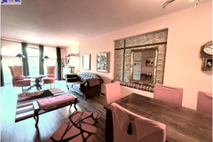 -Po lewej stronie wejście do przestronnego salonu z aneksem kuchennym ok. 50 m2, okna z dwóch stron na zimozielony ogród . W salonie i aneksie ciekawe wykończenie ścian kamieniem, które ładnie są wkomponowane w całość wystroju wnętrza.