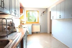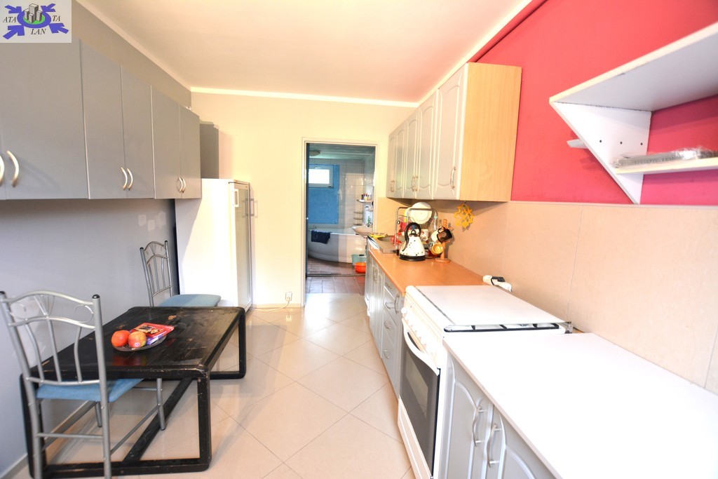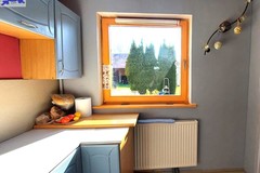 Duża jasna kuchnia z oknem, wyposażona w meble i sprzęt AGD w cenie zakupu nieruchomości.