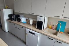 sala konferencyjna 37,9 m2, serwerownia , pomieszczenia socjalne i węzeł sanitarny i serwerownia.