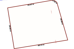 Kształt działki zbliżony do prostokąta, wymiary ok. 34m x 30m.