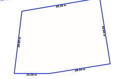 Kształt działki zbliżony do trapezu, wymiary ok. 36m x 30m.