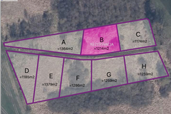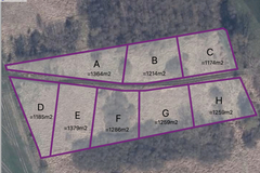 Dostępnych jest łącznie 8 działek z wydanymi warunkami zabudowy oznaczone jako "A"-"H" (1364m2 1214m2 1174m2 1185m2 1379m2 1286m2 1259m2 oraz 1259m2).