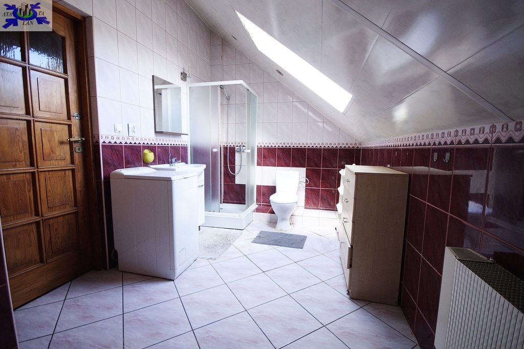 Urokliwie położony w pobliżu lasu dom wolnostojący o powierzchni użytkowej 212 m2 (powierzchnia całkowita 320 m2). Powierzchnia działki wynosi 988 m2. Dojazd drogą asfaltową bardzo spokojną ulicą. Budynek powstał w 1996 roku. Jest ocieplony, połać dachowa w bardzo dobrym stanie. Ogródek z tarasem na werandzie zagospodarowany. Oddzielona od kondygnacji klatka schodowa oraz dwie kuchnie pozwalają na zamieszkiwanie dwóch rodzin. Budynek z zewnątrz nie wymaga nakładów. Nieruchomość posiada trzy kondygnacje