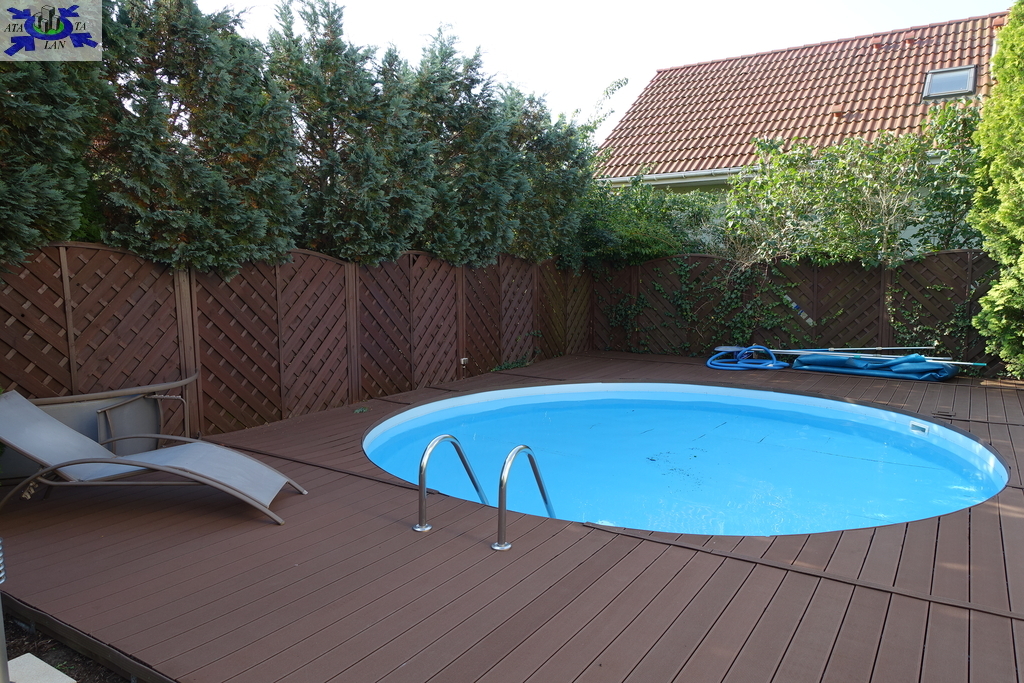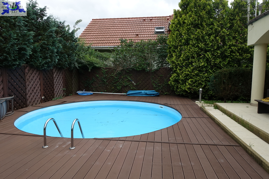 W ogrodzie altana, miejsce do grillowania oraz okrągły basen z podgrzewaną wodą o średnicy 5,5 m.
