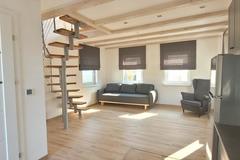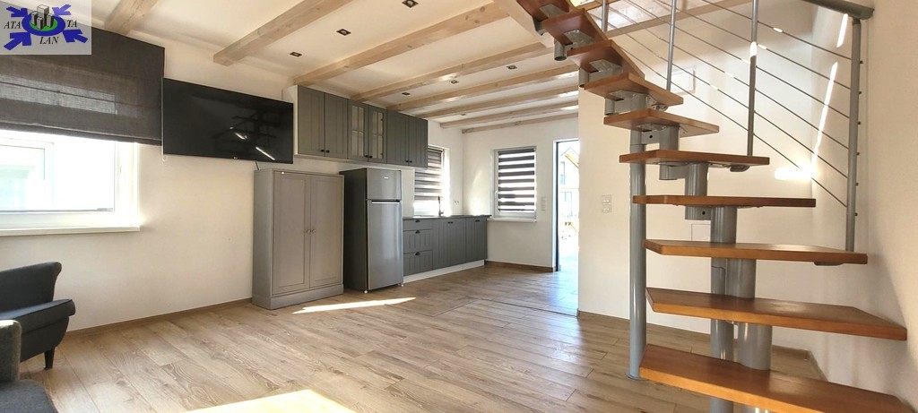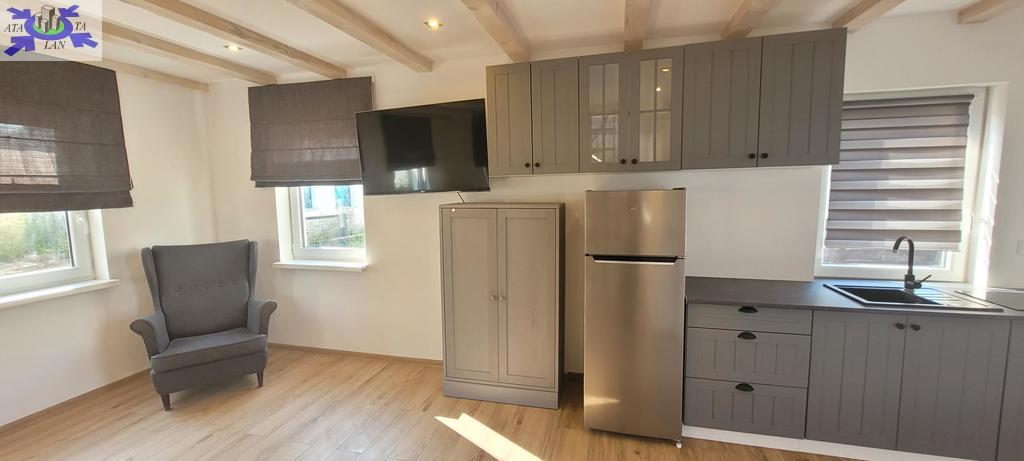 Domek świeżo wykończony i wyposażony w nowe meble i sprzęty. Na podłodze w części dziennej oraz na poziomie I - panele. W cześci kuchennej oraz łazience terakota.