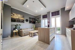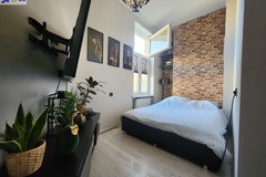 - Salon z aneksem kuchennym i wyjściem na mały balkon.