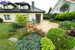 Teren zagospodarowany dużą powierzchnią trawników ścieżek oraz kwiatów.